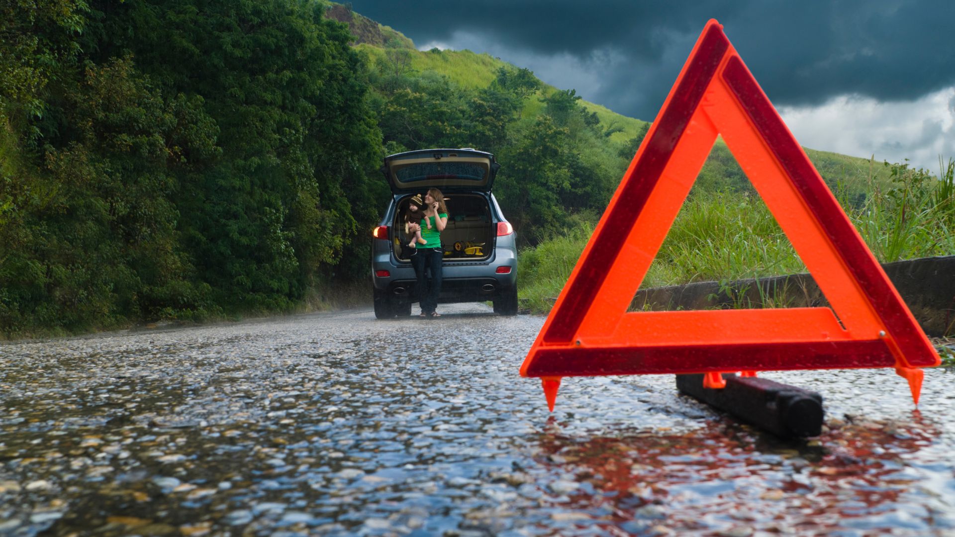 Nachdem alle Details mit uns geklärt sind, heißt es für Sie: bitte noch etwas Geduld. Während Sie warten, ist es wichtig, bereits erste Sicherheitsmaßnahmen zu treffen. Schalten Sie die Warnblinkanlage ein und stellen Sie das Warndreieck vorschriftsgemäß auf – innerorts etwa 50 Meter vom Fahrzeug entfernt, auf der Autobahn mehrere hundert Meter. Nehmen Sie Ihre persönlichen Dokumente sowie die Fahrzeugpapiere an sich und bringen Sie sich, wenn möglich, hinter einer Leitplanke in Sicherheit, bleiben Sie dabei aber stets in Sichtweite Ihres Fahrzeugs. Besonders auf stark befahrenen Straßen oder Autobahnen hat Ihre Sicherheit oberste Priorität.